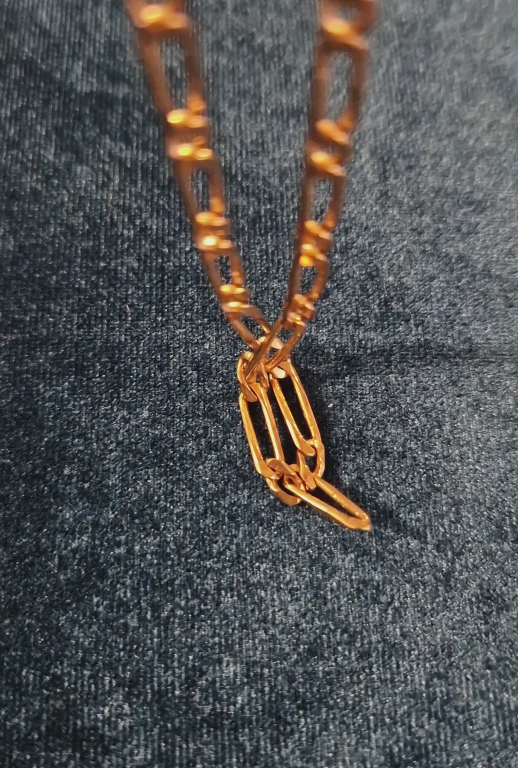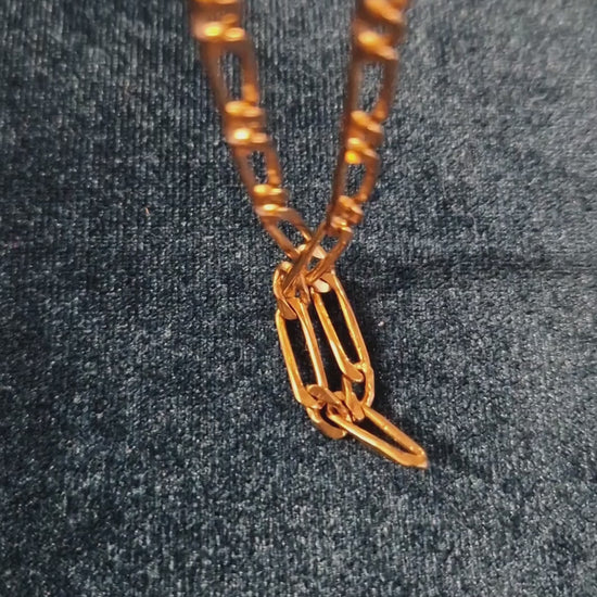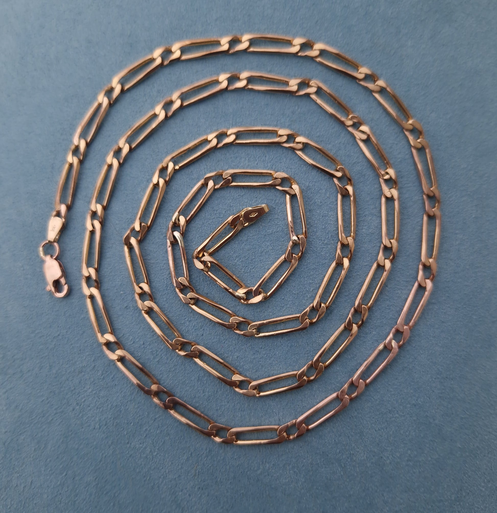 Classic long vintage unisex 9ct gold link chain with alternating elongated curb links. The gold is a beautiful deep colour with a very soft subtle rose gold hue, perfect for layering with other pieces or wearing on its own.