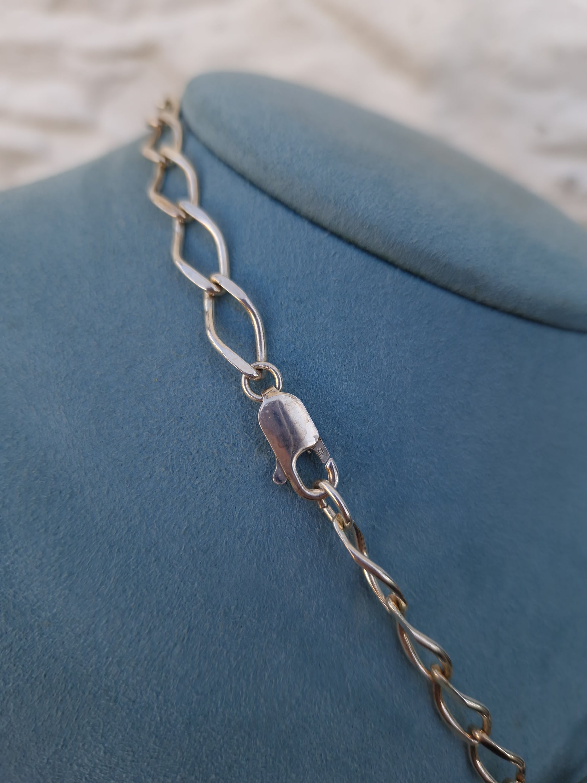 Vintage 1970s Native American sterling silver pendant necklace, the pendant is bezel set with a large oval Turritella agate. The accompanying 16 inch silver necklace consists of large links, secured with a lobster clasp.