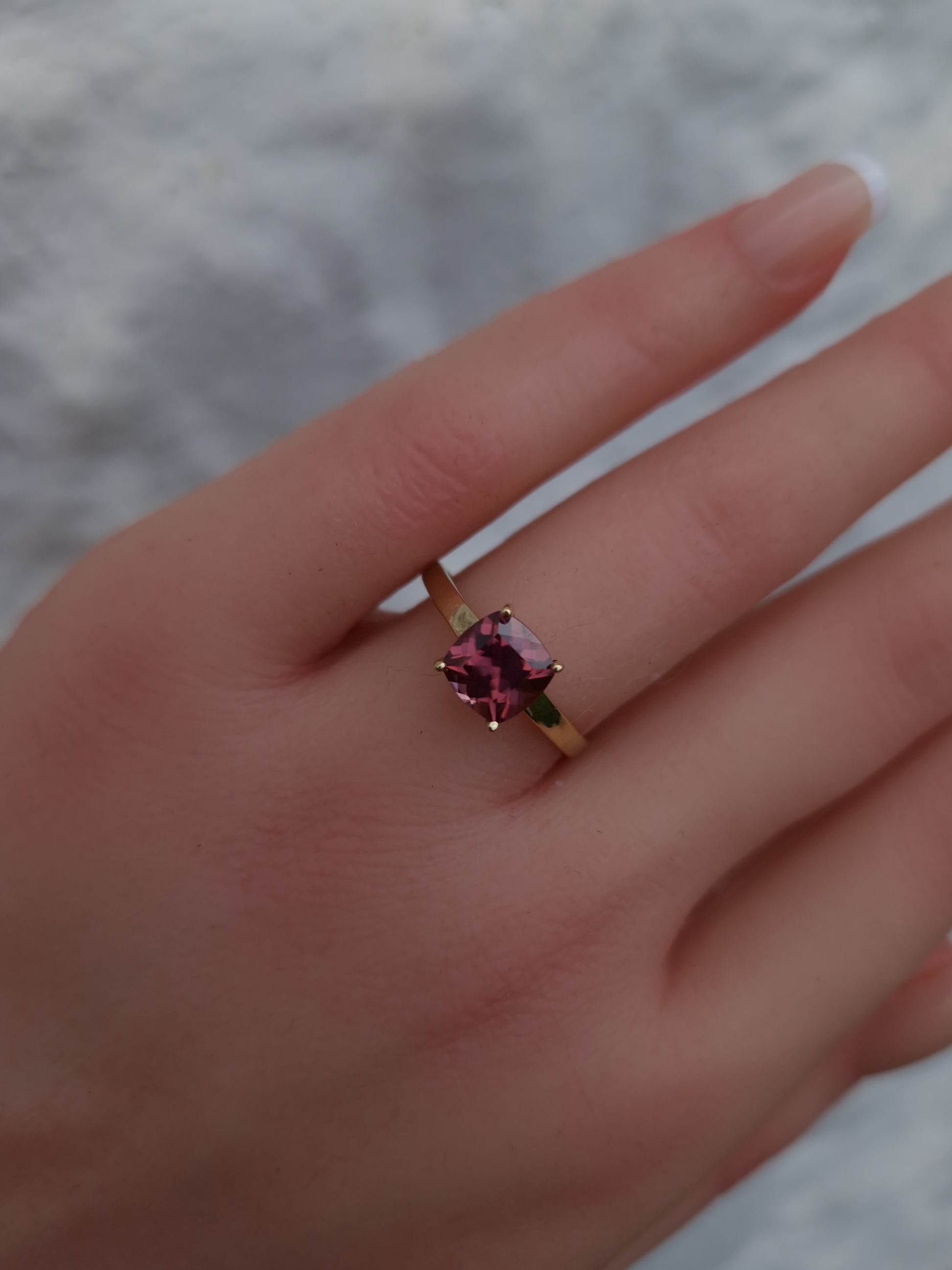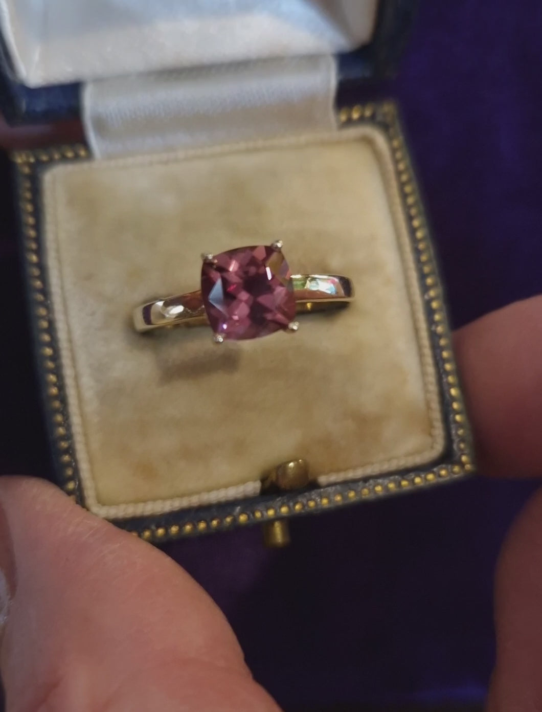 The zircon is a beautiful deep raspberry colour with gorgeous flashes of peach.